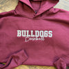 Show your team pride with our cozy hooded sweatshirt. Featuring your team mascot embroidered in a bold two-color varsity font and baseball underneath, this sweatshirt combines style and comfort. Made from a soft cotton-poly blend with a roomy front pocket and adjustable drawstrings, it’s perfect for game days or casual wear.