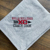 Embroidered cross country design, team name, and coach’s name