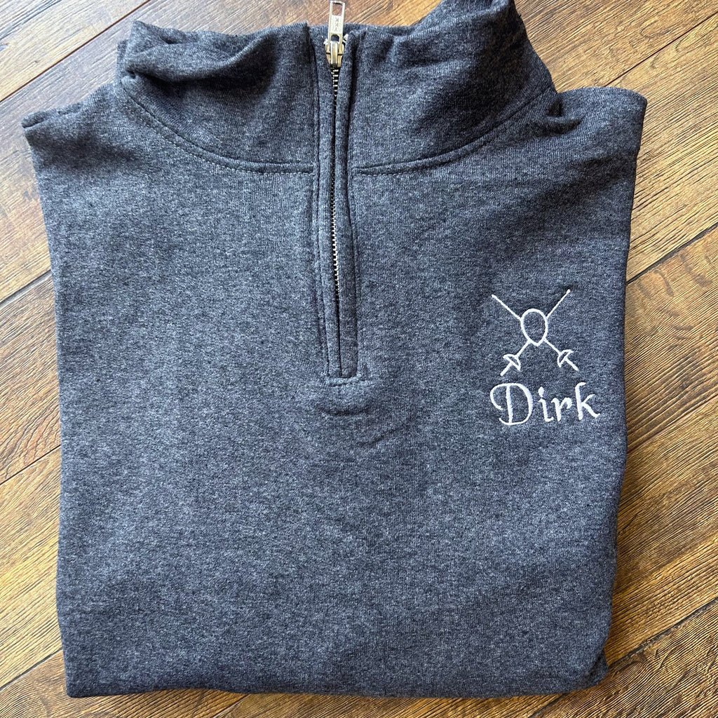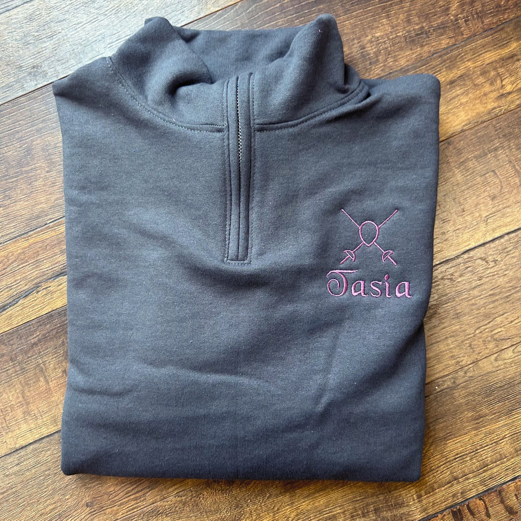 Exude style and elegance on and off the fencing piste with this Fencing Personalized Quarter Zip Sweatshirt. Made of a blend of cotton and polyester, this sweatshirt is perfect for those chilly days at practice, or showing your love of the sport out in the world. But what truly sets this piece apart is its personalized touch. Each sweatshirt is embroidered with the fencer's or coach's name, making it unambiguously yours. The sweatshirt's quarter-zip design and durable stitching ensure longevity and consistent comfort. A perfect statement piece for anyone involved in this noble sport, this sweatshirt works equally well as an ideal gift. Designed for a relaxed fit, it's available in range of sizes for a perfect fit. Personalize your fencing journeys with this unique, customized sweatshirt!
