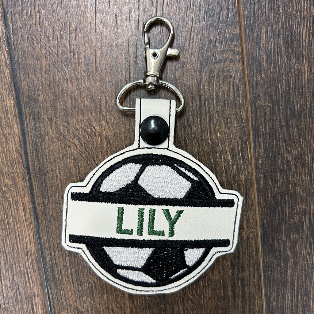 Carry your team spirit wherever you go with this personalized soccer ball keychain made from durable marine vinyl. Designed in the shape of a soccer ball, it features a stylish split ball design with your player’s name embroidered for a custom touch. Perfect for backpacks, gear bags, or keys, this keychain is a great gift for players, coaches, and soccer fans who want to show off their love for the game.