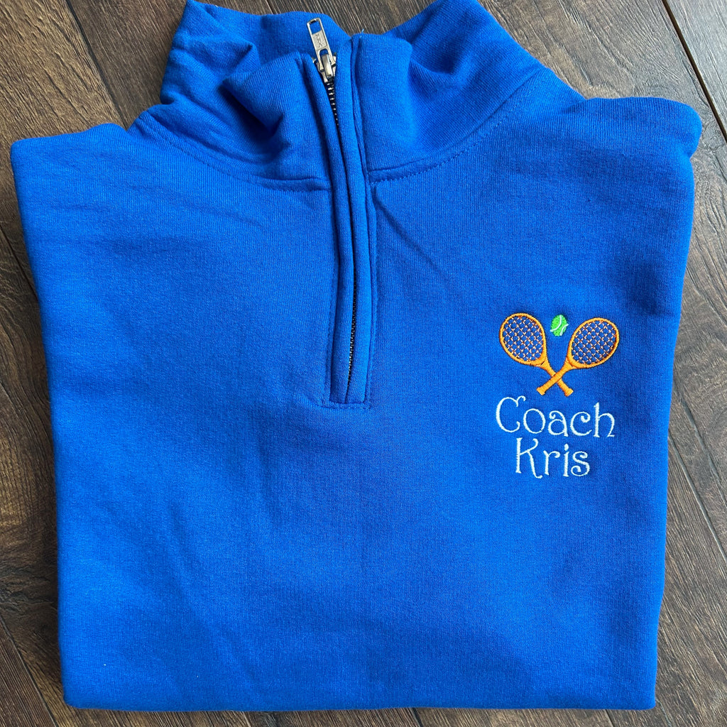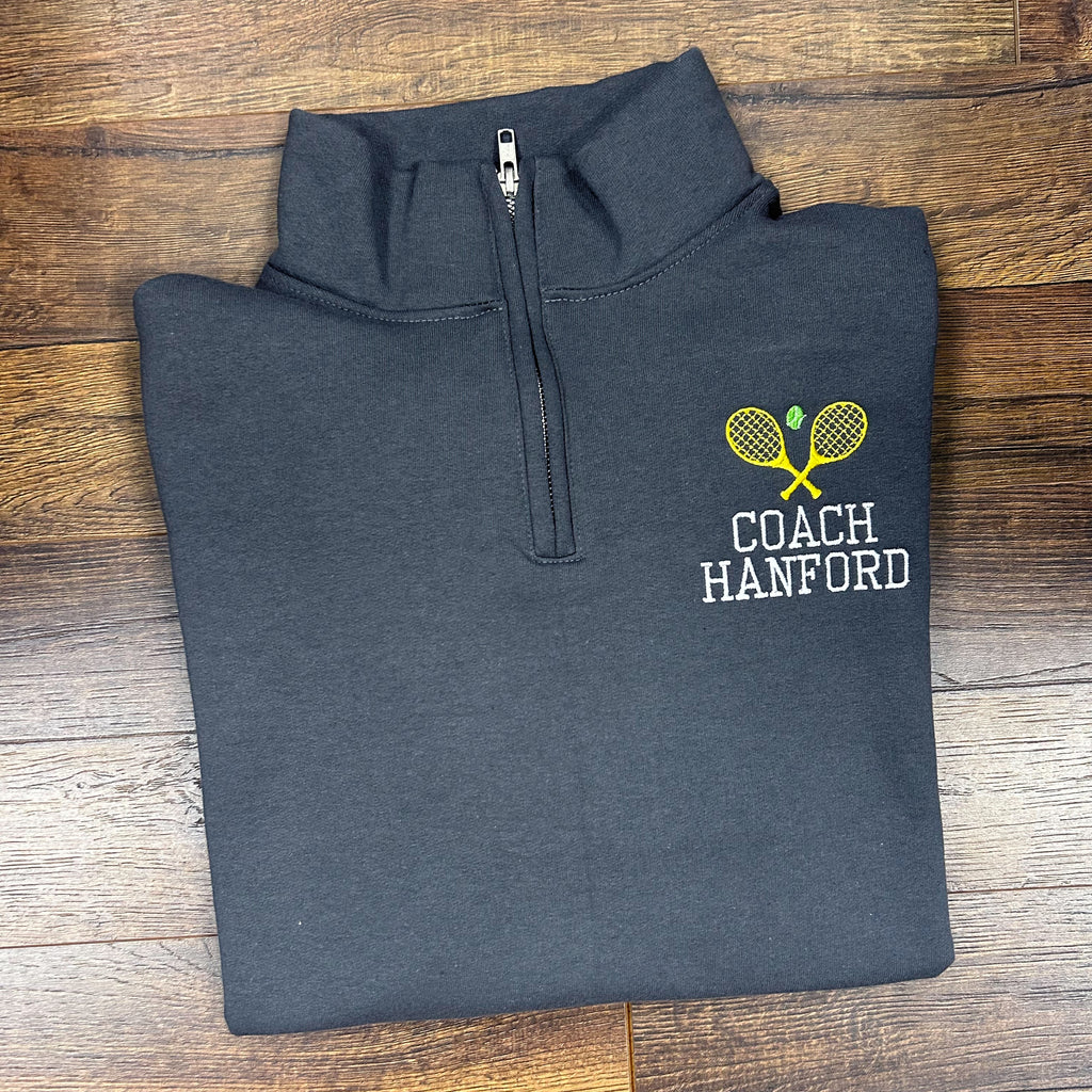 Personalized Tennis Coach Quarter Zip Pullover Sweatshirt