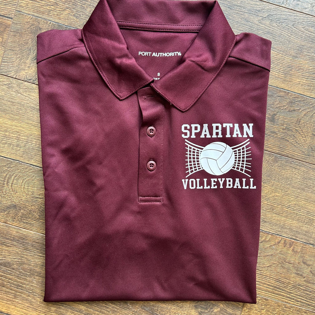 Show your team pride with polished, athletic style in this short sleeve performance polo. Designed for comfort and versatility, this polo features a volleyball graphic and your team name printed on the left chest, giving it a clean, custom look perfect for coaches, staff, and dedicated supporters.