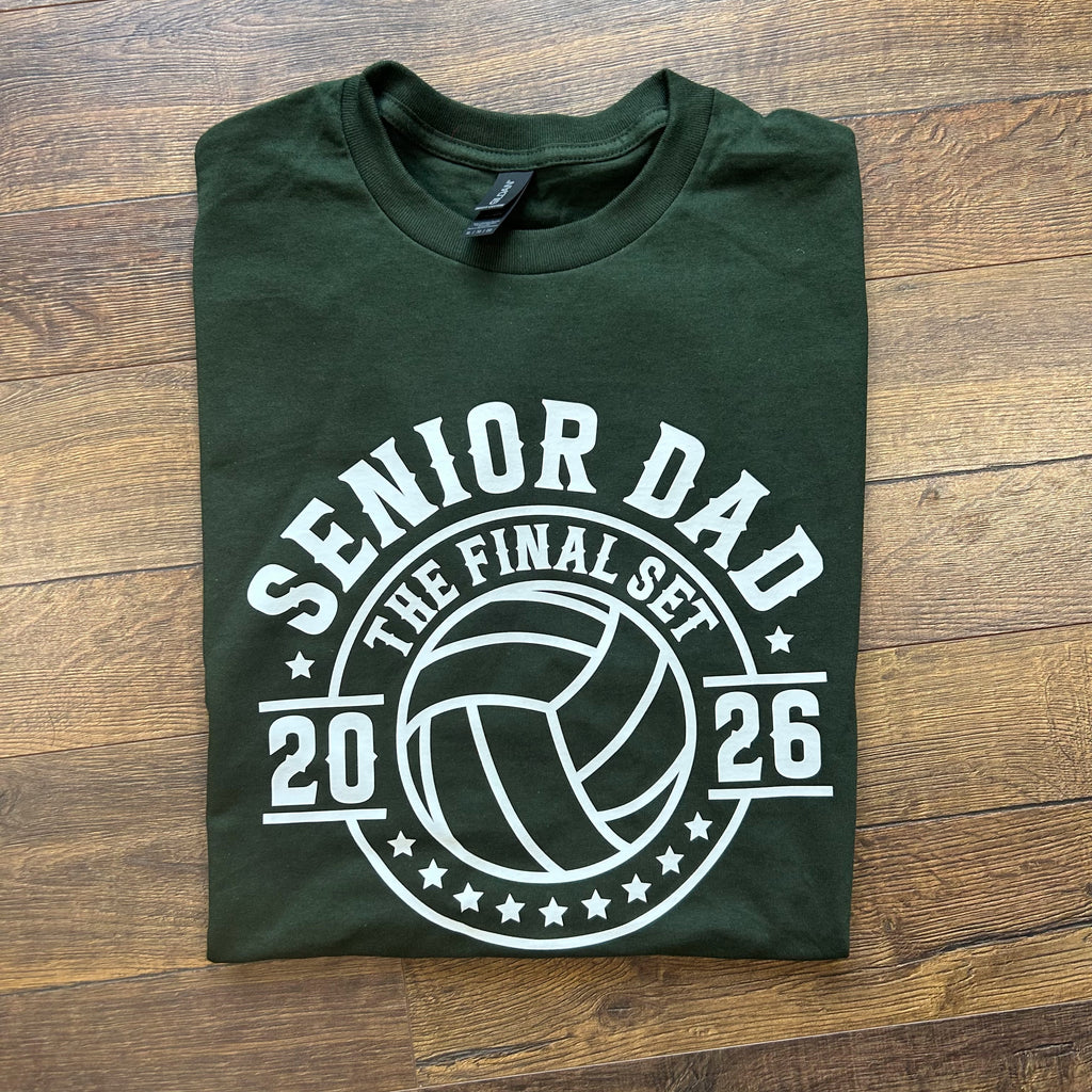 Celebrate your senior’s big night with this custom short sleeve shirt made just for proud volleyball dads. Featuring a bold volleyball design with Senior Dad printed on the front, it’s the perfect way to cheer on your athlete and show your support. Comfortable and durable, this shirt is great for senior night, games, or team events and makes a meaningful keepsake for volleyball dads.