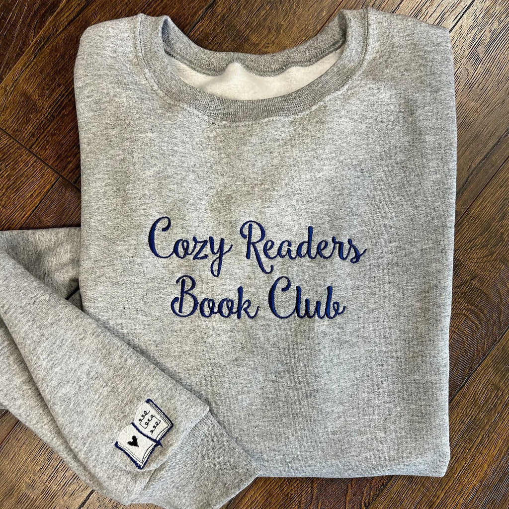 Snuggle up in this ultra-soft crewneck sweatshirt featuring "Cozy Readers Book Club" delicately embroidered across the chest. A small embroidered book on the sleeve cuff adds the perfect finishing touch for book lovers. Whether you're curled up with your latest read or heading to your favorite coffee shop, this sweatshirt is made for comfort, quiet moments, and all things cozy and literary.