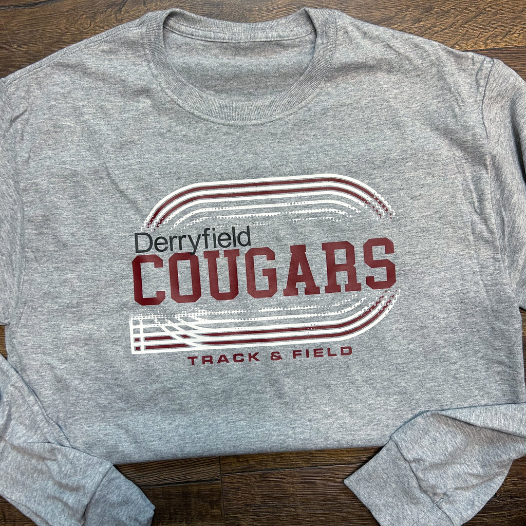 Show up in style and team pride with this long sleeve track and field shirt, featuring a bold front design that includes your team mascot and name. Built for comfort and performance, this shirt is made from soft, breathable fabric—ideal for cool morning practices, meet days, or everyday wear. The athletic cut allows for easy movement, while the standout graphic lets everyone know who you represent. Whether you're an athlete, coach, or supporter, this shirt is the perfect way to celebrate your team’s speed, strength, and spirit.