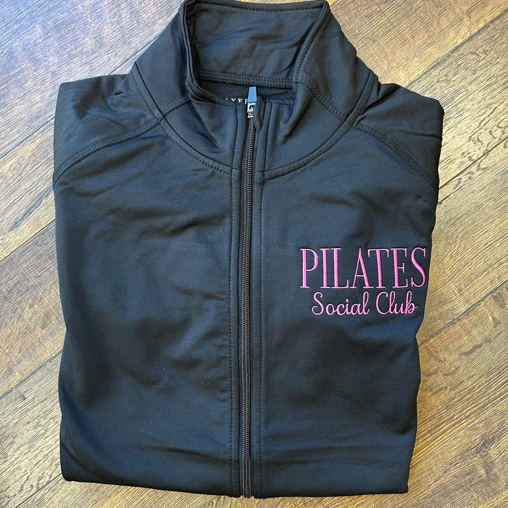 Stay stylish and comfortable from studio to street with this lightweight workout jacket, featuring Pilates Social Clubembroidered on the left chest. Designed with a flattering fit and breathable fabric, it’s perfect for layering before or after your Pilates sessions. Whether you're headed to class or grabbing a smoothie after, this jacket is a must-have for every Pilates lover.