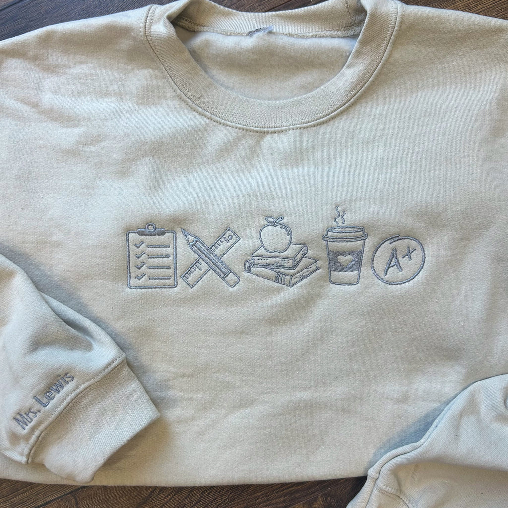 Teacher Icon Embroidered Crewneck Sweatshirt